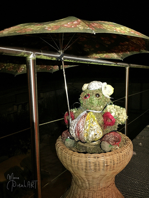 I put this little fellow on my balcony with an umbrella over it in order to prevent it from getting wet or covered in snow. The first guests have arrived. A couple of Eurasian blue tits enjoy the meal!